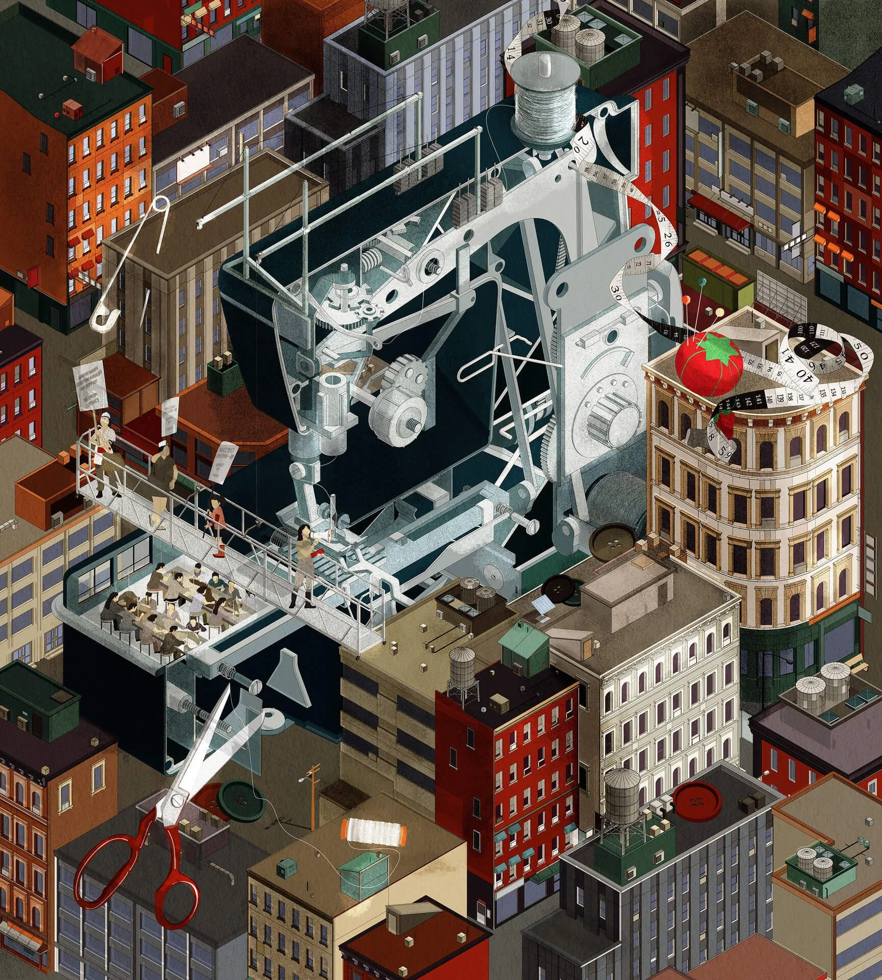 This illustration portray the 1982 garment workers' strike in Manhattan, a pivotal moment led predominantly by immigrant Asian women. These workers, many of whom were recent arrivals earning low wages, rallied against employers who subjected them to hazardous working conditions and unfair pay. They demanded protections and fair contracts through union representation.