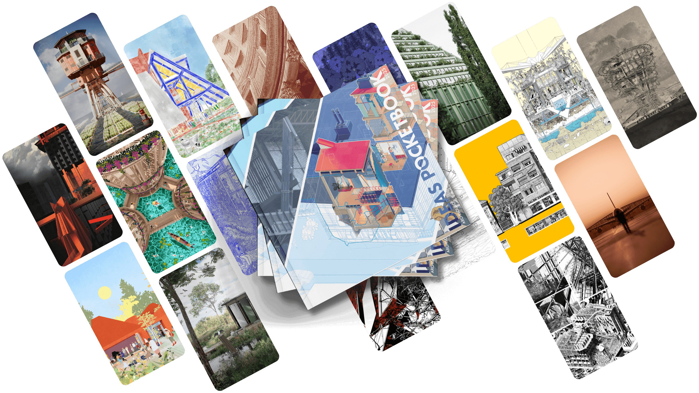 Made for the 2024 edition of the challenge Inktober, with gathered ideas on instagram for themes around architecture, nature, landscape and utopia. 25 themes were used to trace 13x13 cm blue ink drawings by hand : montains, landscape, a nest, fatal, ancient greece, spomenik, metamorphose, ruins, riparian vegetation, opus incertum, roof, water cycle, abundance, insects, pinus wallichiana,hut, balcony,people welcomed, tree house, forest undergrowth, sequoias, human stupidity, an orchard, naval architecture, underwater world. Using Photoshop and procreate, these 25 drawings were scanned and assembled to create a 70x70 cm illustration.