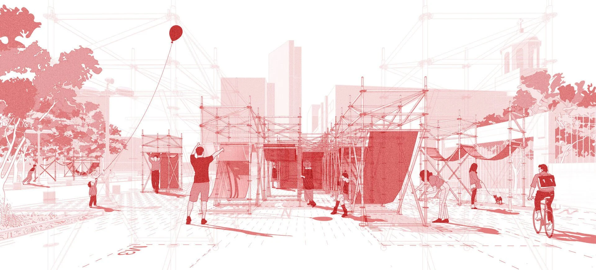 The roof, inspired by the nomadic plaza tent, doesn't just cover—it activates. It is structure, textile, and gesture. It sparks human dynamics, connects actions, and provokes encounters. In the city, it's not just about infrastructure, but about the nodes that people activate: a shadow, a pop-up tent, a dance. Like a children's daily walk through the Alameda Central in CDMX, the everyday transforms into play. The latin-american roof is ephemeral and relational: it appears when needed, folds, expands, or vanishes. It is more than an object—it is an event. It’s not about imposing roofs, but about creating conditions for the roof to happen. The roof that vanishes is also the roof that appears exactly where it's needed