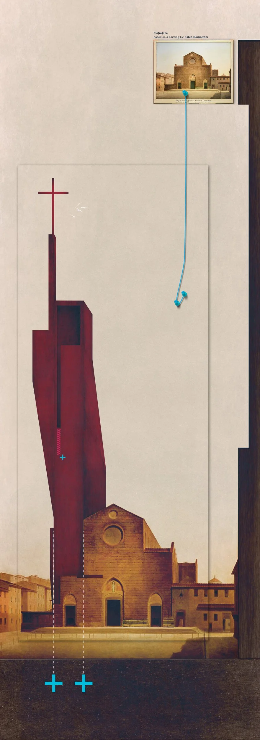 This design layers a contemporary architectural collage over Fabio Borbottoni’s historic Florence painting, merging memory and place. It transforms the familiar into a new spatial dialogue, celebrating my encounter with the city’s timeless beauty.
